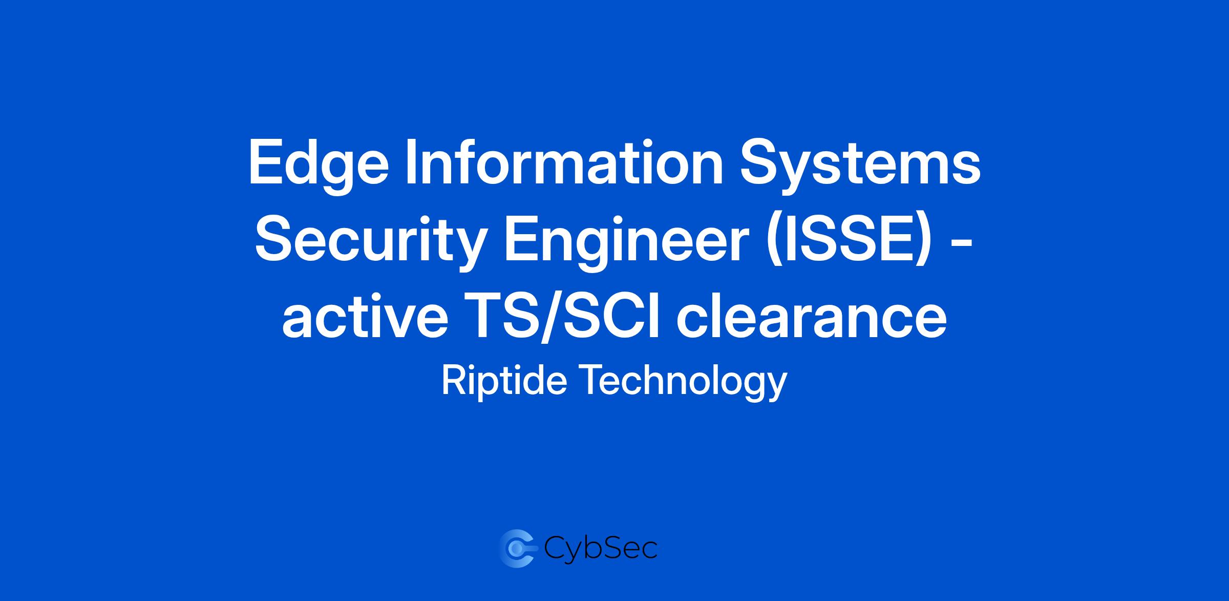 Riptide Technology has a great opportunity for a Edge Information Systems Security Engineer (ISSE) - active TS/SCI clearance to support our government customer based in Springfield, VA. This position is required to be onsite.
